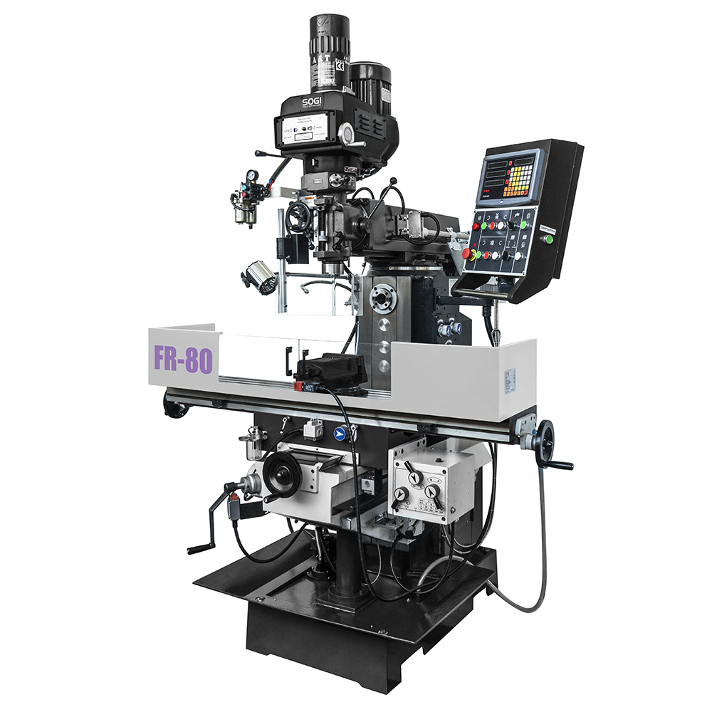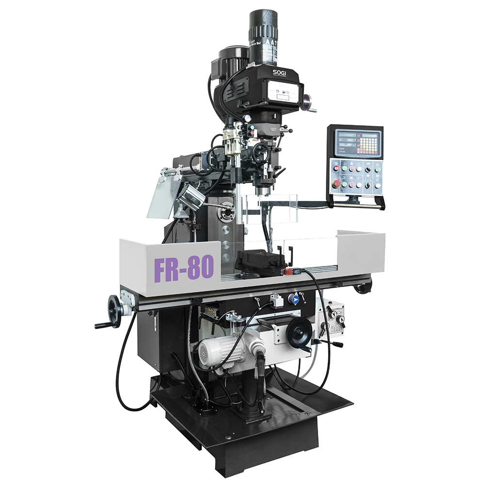 La fresatrice verticale/orizzontale SOGI FR-80 è una macchina utensile tradizionale e compatta, in grado di eseguire forature, alesature, scanalature e fresature (con l'ausilio di utensili a candela, ad inserto o a disco) su materiali quali ghisa e acciaio. Grazie alle molteplici funzionalità esplicabili da due mandrini, uno verticale l'altro orizzontale, la fresatrice professionale SOGI FR-80 risponde alle più svariate esigenze lavorative.