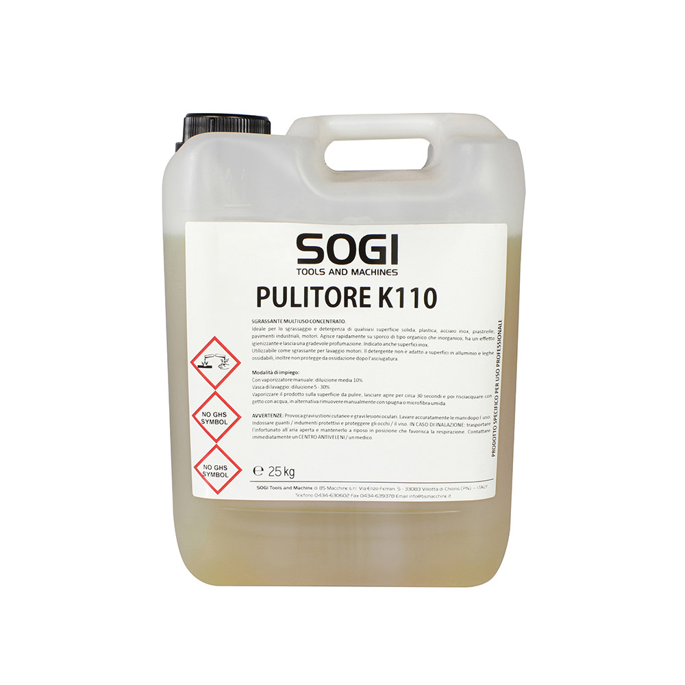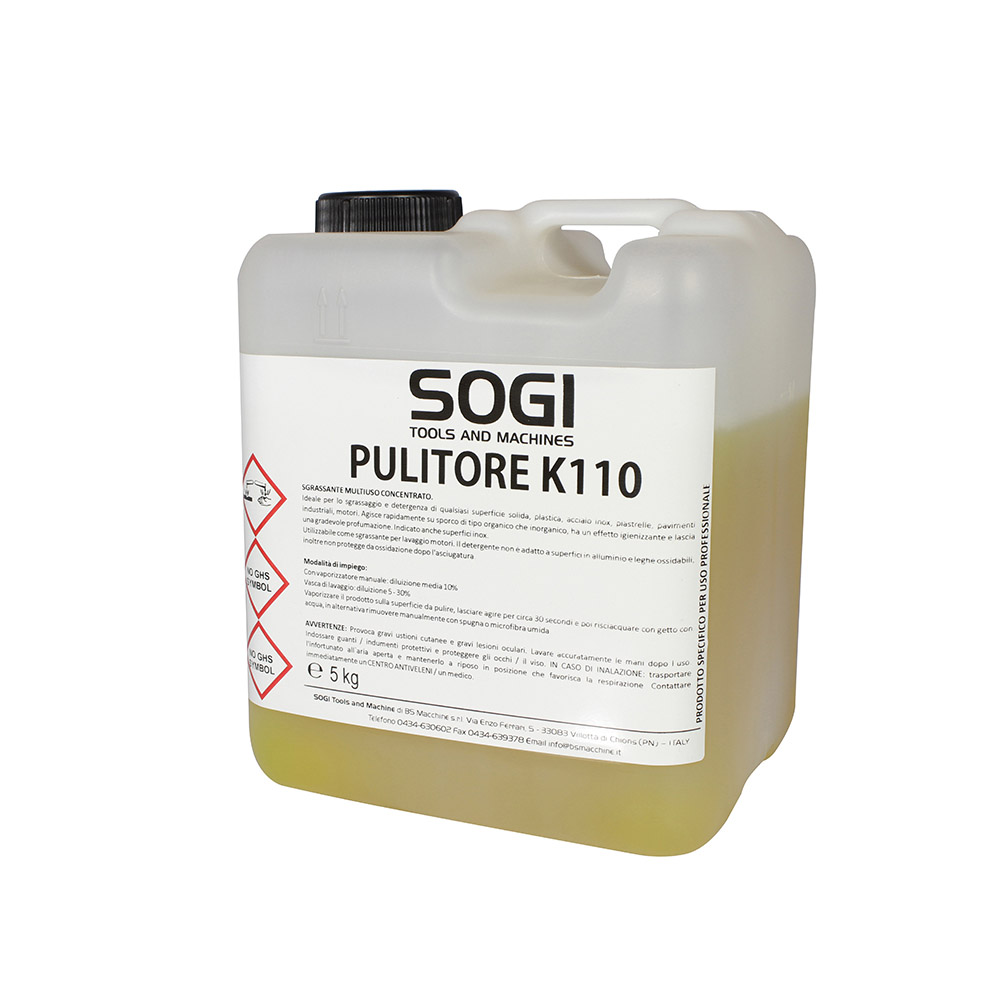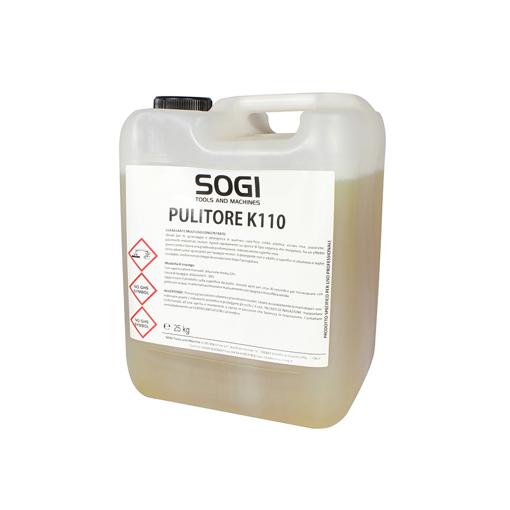 Liquido sgrassante detergente ultraconcentrato K110 per vasca pulitrice SOGI formato 1 L, 5 kg, 10 kg o 25 kg